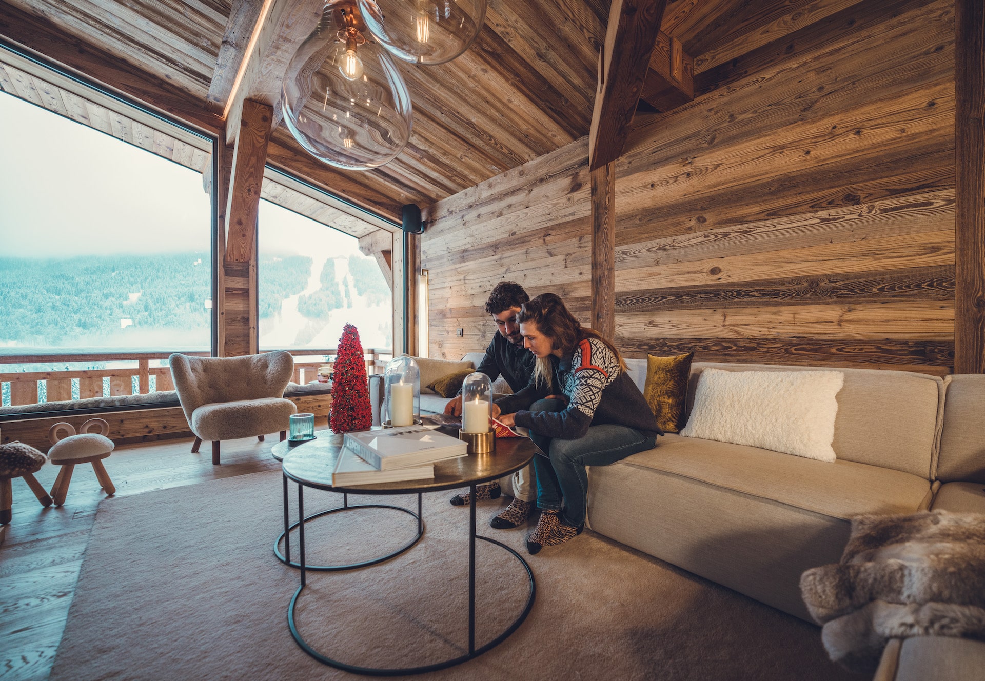 L’utilisation d’essences locales comme le mélèze ou l’épicéa sont privilégiés. D’une part pour leur résistance thermique mais aussi pour leur teinte naturelle qui se patine avec le temps et s’intègre parfaitement dans le paysage des Gets.