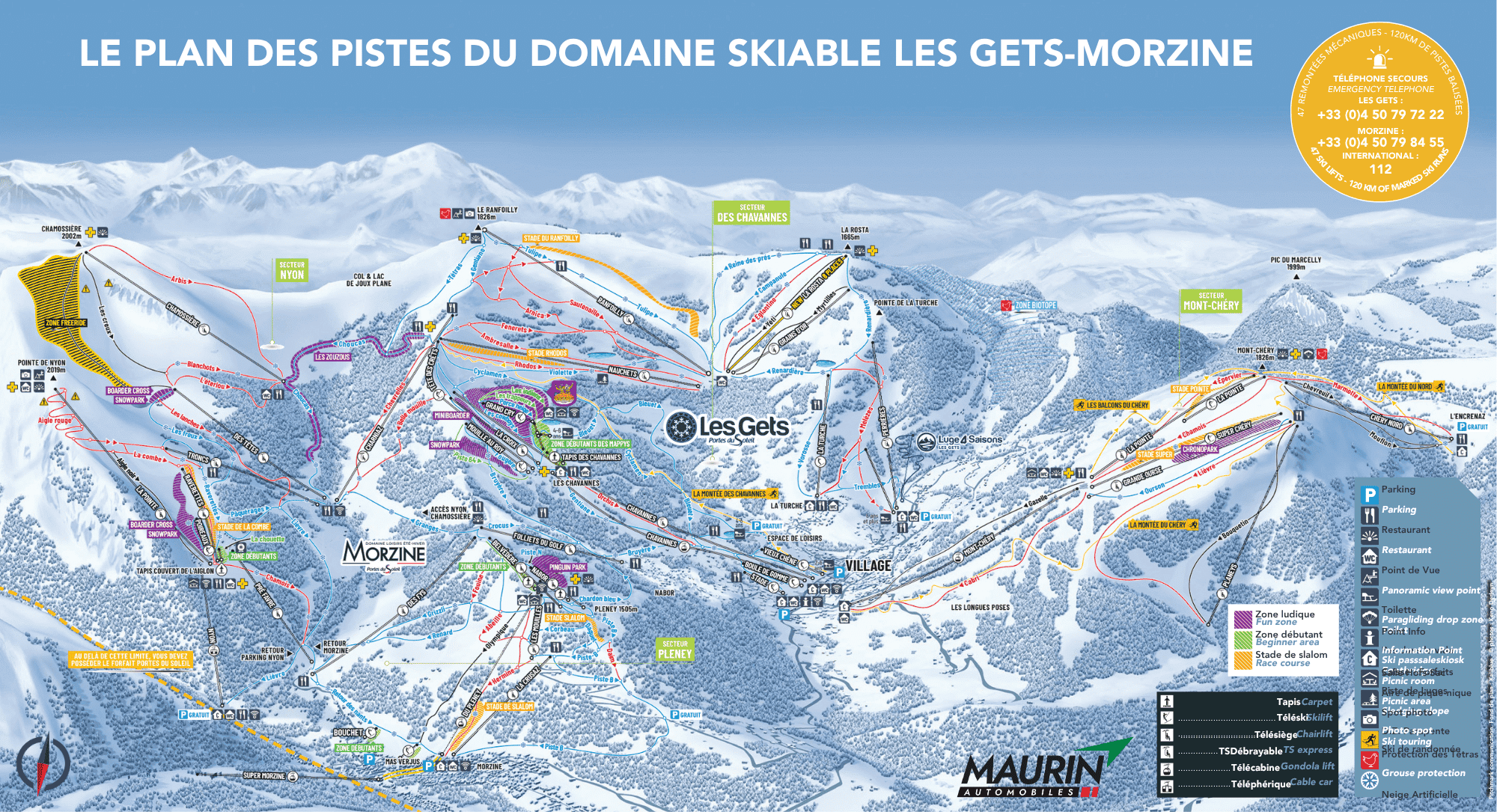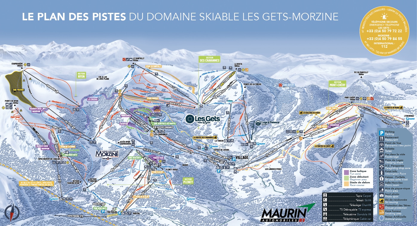 Le domaine skiable Les Gets-Morzine (120 km de pistes balisées, 48 remontées mécaniques) propose des pistes adaptées à tous les niveaux, un grand nombre d’espaces ludiques pour les adultes et les enfants, une zone pour débutants gratuite et de nombreux restaurants d’altitude.