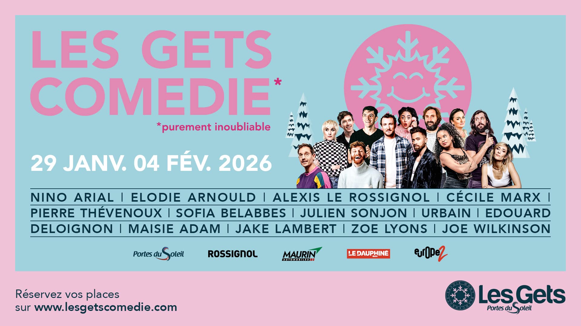Kom van donderdag 29 januari tot woensdag 4 februari 2026 naar Les Gets voor een week vol plezier met ons niet te missen winterevenement: Les Gets Comédie.